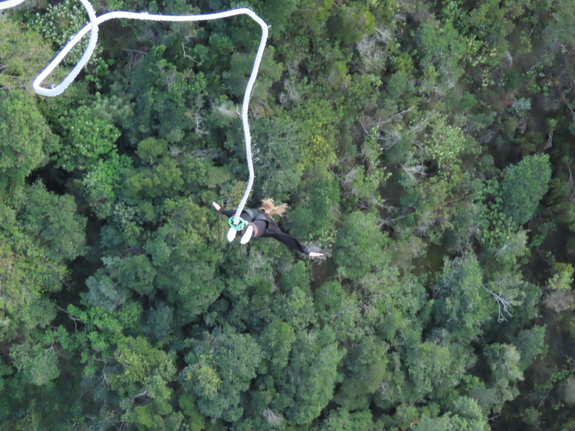 Om bij het 'spring' gedeelte te komen moet je eerst via een zipline onder de brug door. Ik kan je zeggen dat is HOOG. Maar goed dan kan je wel alvast wennen aan de hoogte voor de jump. De sprong zelf is zo'n rare ervaring omdat je lichaam zich niet over de rand wilt laten vallen en je als het waren vecht tegen je eigen gedachte. Eenmaal gesprongen dan hang je te bungelen helemaal in je eentje beneden, ik denk dat ik dat stukje het engste vond. Gelukkig komt er al snel een werknemer naar beneden, die zet je rechtop en dan worden jullie samen omhoog getakeld. Weer helemaal omhoog de brug op...