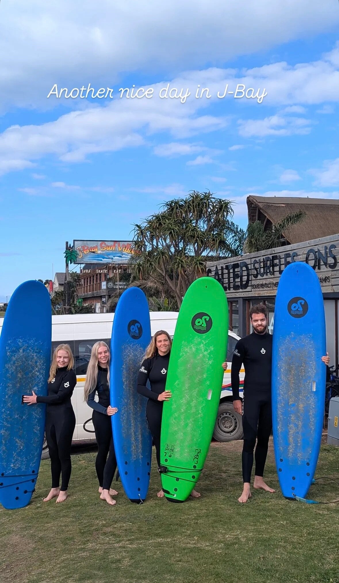Voordat ik naar Zuid-Afrika ging had ik nog nooit gesurfd. Je kan het hier (in Jbay) echt super goed leren aangezien de golven vaak perfect zijn om op te surfen.